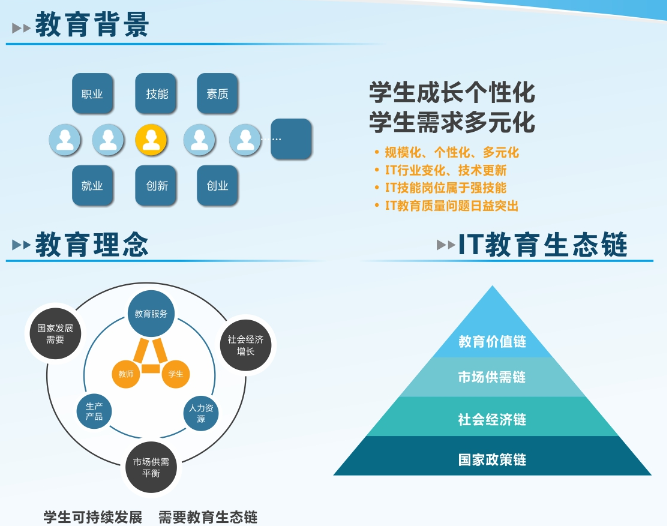 為改善這種現狀,非常需要學(xué)校與企業(yè)共同教育的模式,在聯(lián)合教學(xué)上,厚溥做得非常好。與接觸到的其他培訓機構相比,厚溥團隊對于教育的領(lǐng)悟更深入,本質(zhì)領(lǐng)會(huì )更到位。厚溥資源豐富,但更重要的是內容、方法、管理三個(gè)方面,學(xué)??梢酝ㄟ^(guò)購買(mǎi)優(yōu)質(zhì)服務(wù)來(lái)提升自己辦學(xué)水平。