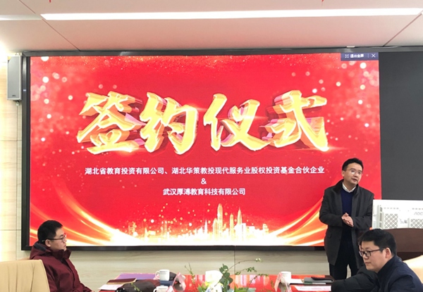 2020年1月1日上午,年之始、月之始、日之始。湖北省教育投資有限公司(以下簡(jiǎn)稱(chēng)湖北省教投)、湖北華策教投現代服務(wù)業(yè)股權投資基金合伙企業(yè)(以下簡(jiǎn)稱(chēng)湖北華策教投)與武漢厚溥教育科技有限公司(以下簡(jiǎn)稱(chēng)厚溥)合作簽約儀式在武漢花山軟件新城厚溥辦公樓舉行,由湖北省教投、湖北華策教投共同投資厚溥,三方優(yōu)勢互補,積極創(chuàng )新提高IT人才供給側效能,助力IT產(chǎn)業(yè)發(fā)展及區域經(jīng)濟轉型升級。