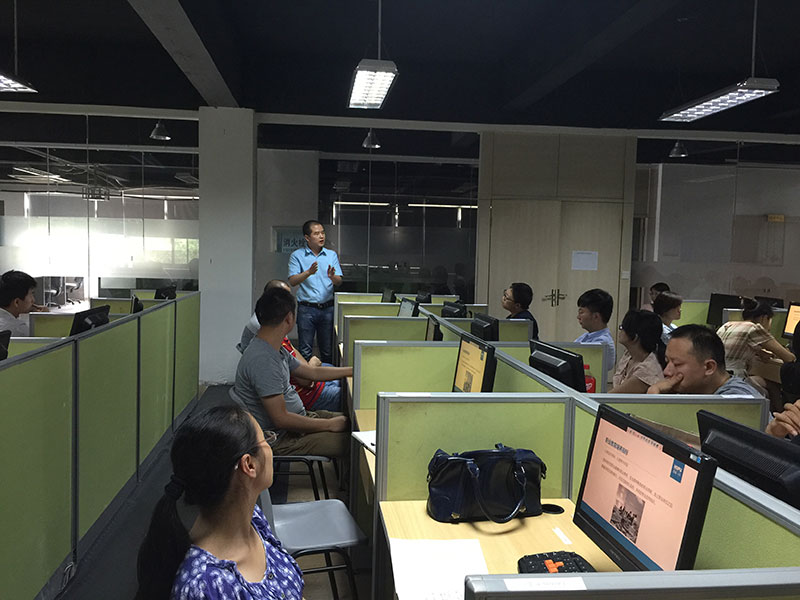 此次會(huì )議為期兩天,內容充實(shí),7月12日上午主要是常務(wù)副總經(jīng)理、技術(shù)總監翁高飛老師介紹了公司的發(fā)展現狀及未來(lái)的發(fā)展規劃,介紹了ECDIO工程教育模式的核心思想,荊職校區負責人李杰老師分享了分類(lèi)培訓與因材施教的具體實(shí)施,技術(shù)中心涂建老師分享了“基于項目驅動(dòng)微課設計”的設計流程。當天下午各位老師動(dòng)手實(shí)踐微課設計,翁總對老師在制作中出現的問(wèn)題及時(shí)給予講解。7月13日,專(zhuān)業(yè)老師制作微課并進(jìn)行宣講由技術(shù)中心進(jìn)行點(diǎn)評,武漢厚溥企業(yè)陳董事長(cháng)也對微課設計的背景及其長(cháng)遠的規劃做了重要講話(huà)。