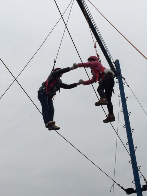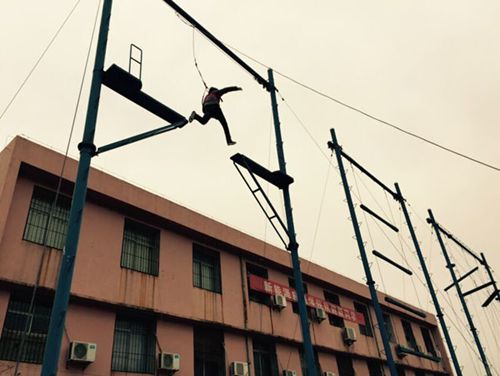新員工進(jìn)行“空中斷橋”