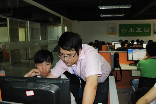 夏小山老師在課堂上輔導學(xué)生做項目