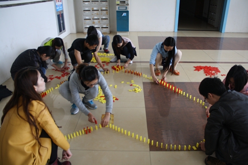 此次活動(dòng)與前三屆比賽相比,任務(wù)難度有所加大,個(gè)別任務(wù)點(diǎn)需耗時(shí)40分鐘才能完成,比如個(gè)性點(diǎn)—多米諾骨牌,項目道具包含5萬(wàn)塊骨牌,每隊領(lǐng)取相應的多米諾骨牌,按照參考圖型,由紅色、黃色、紅色三個(gè)小方塊擺放成多米諾圖形,并能成功形成多米諾效應。此項任務(wù)考驗了團隊成員之間的協(xié)調能力以及團隊的凝聚力。