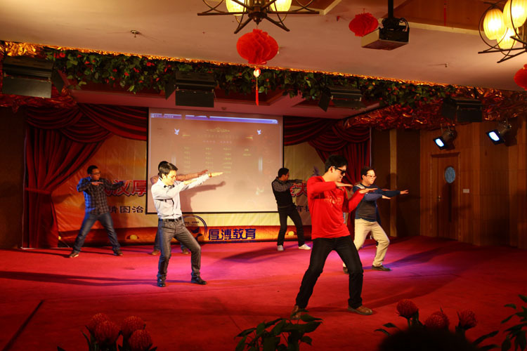 春敲起了戰鼓,年吹響了號角!2013年1月15日-17日,武漢厚溥教育科技有限公司2013年度年會(huì )在安徽省合肥市三河古鎮、冶父山、金孔雀度假村盛大舉行,武漢厚溥企業(yè)董事長(cháng)陳相陽(yáng)、執行董事吳簡(jiǎn)珍、總經(jīng)理胡俊等重要領(lǐng)導及全體同仁歡聚一堂。整個(gè)年會(huì )包括游玩三河古鎮、冶父山拓展、溫泉、全員聚餐、優(yōu)秀員工表彰及文藝匯演等環(huán)節。整個(gè)年會(huì )始終洋溢著(zhù)振奮、進(jìn)取、熱烈、愉快的氣氛,精彩紛呈,亮點(diǎn)鮮明。