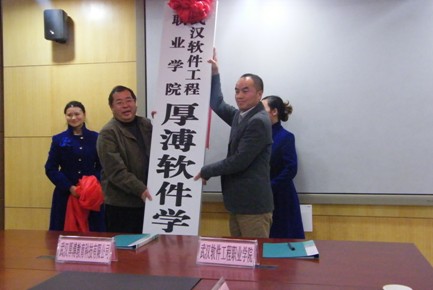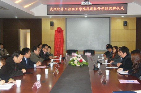 2013年12月2日下午15:00武漢厚溥教育科技有限公司與武漢軟件工程職業(yè)學(xué)院(以下簡(jiǎn)稱(chēng)武軟)在武軟實(shí)訓中心二樓會(huì )議室舉行了校企合作共建院系厚溥軟件學(xué)院揭牌儀式。