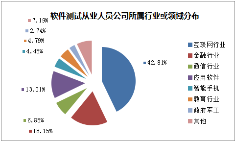 數據顯示,被調查測試人員所屬公司中,互聯(lián)網(wǎng)行業(yè)及金融行業(yè)分別占42.81%和18.15%,綜合占比超過(guò)六成,這也印證了經(jīng)濟結構調整的成果,目前互聯(lián)網(wǎng)行業(yè)和金融行業(yè)受到了投資者和個(gè)人的青睞,企業(yè)需求急劇上升,軟件測試人才缺口巨大。